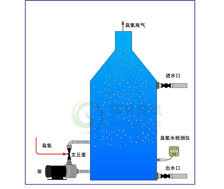 臭氧溶解與泵和文丘里噴射器是簡單的設(shè)置和相當(dāng)有效。由于文丘里管的強(qiáng)力混合作用,這將在槽井中混合水,并比典型的氣泡擴(kuò)散器實現(xiàn)更高的臭氧向水中的傳質(zhì)。