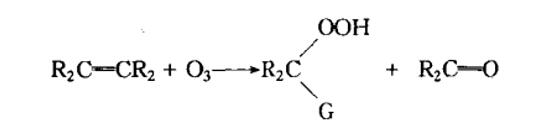 式中G代表OH、OCH?、OCCH?等基。反應(yīng)的 很終產(chǎn)物可能是單體的、聚合的、或交錯的臭氧化物的混合體。臭氧化物分解成醛和酸。